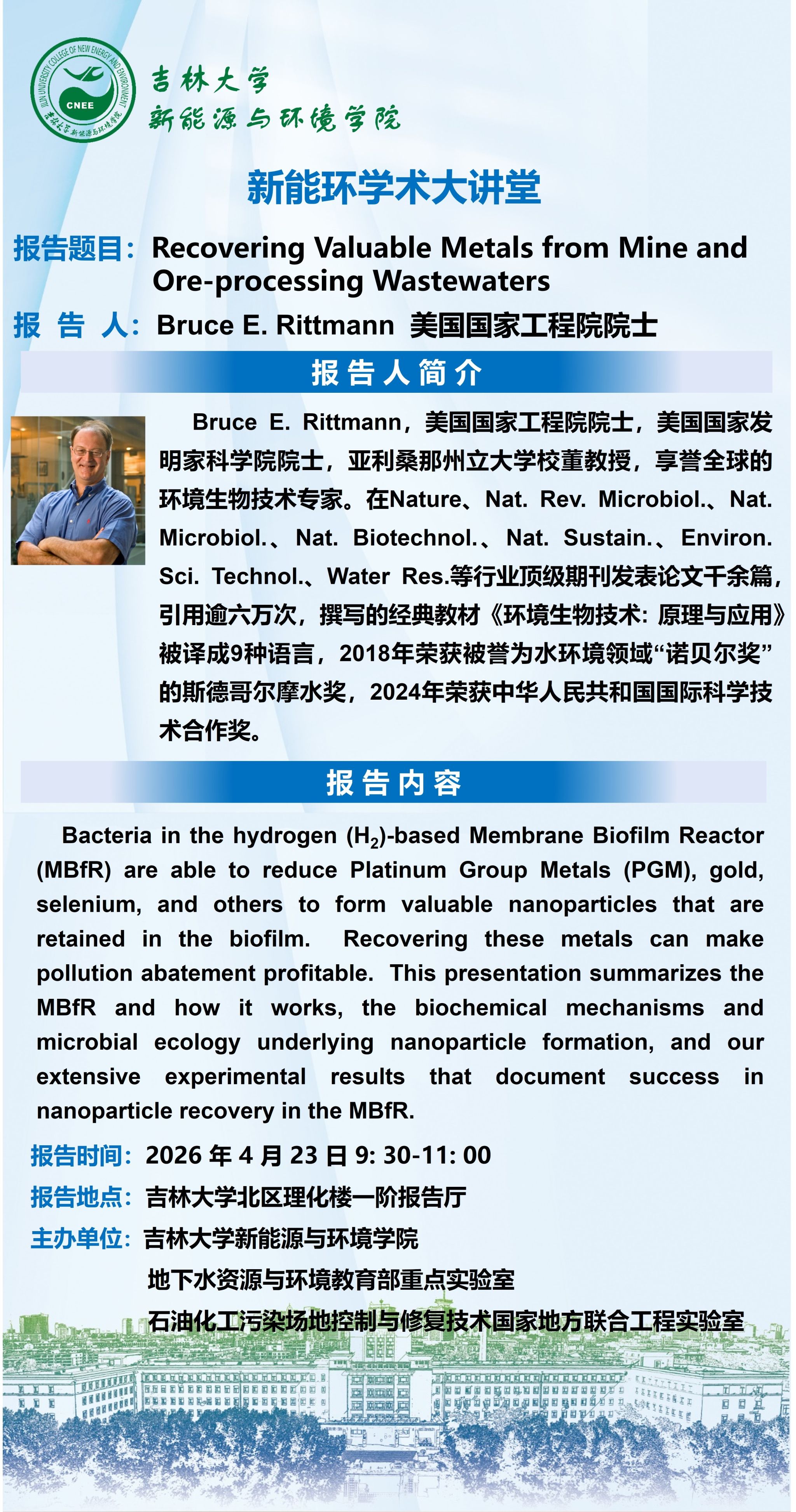庆祝欧洲足球 建校80周年新能环学术大讲堂-Recovering Valuable Metals from Mine and Ore-processing Wastewaters