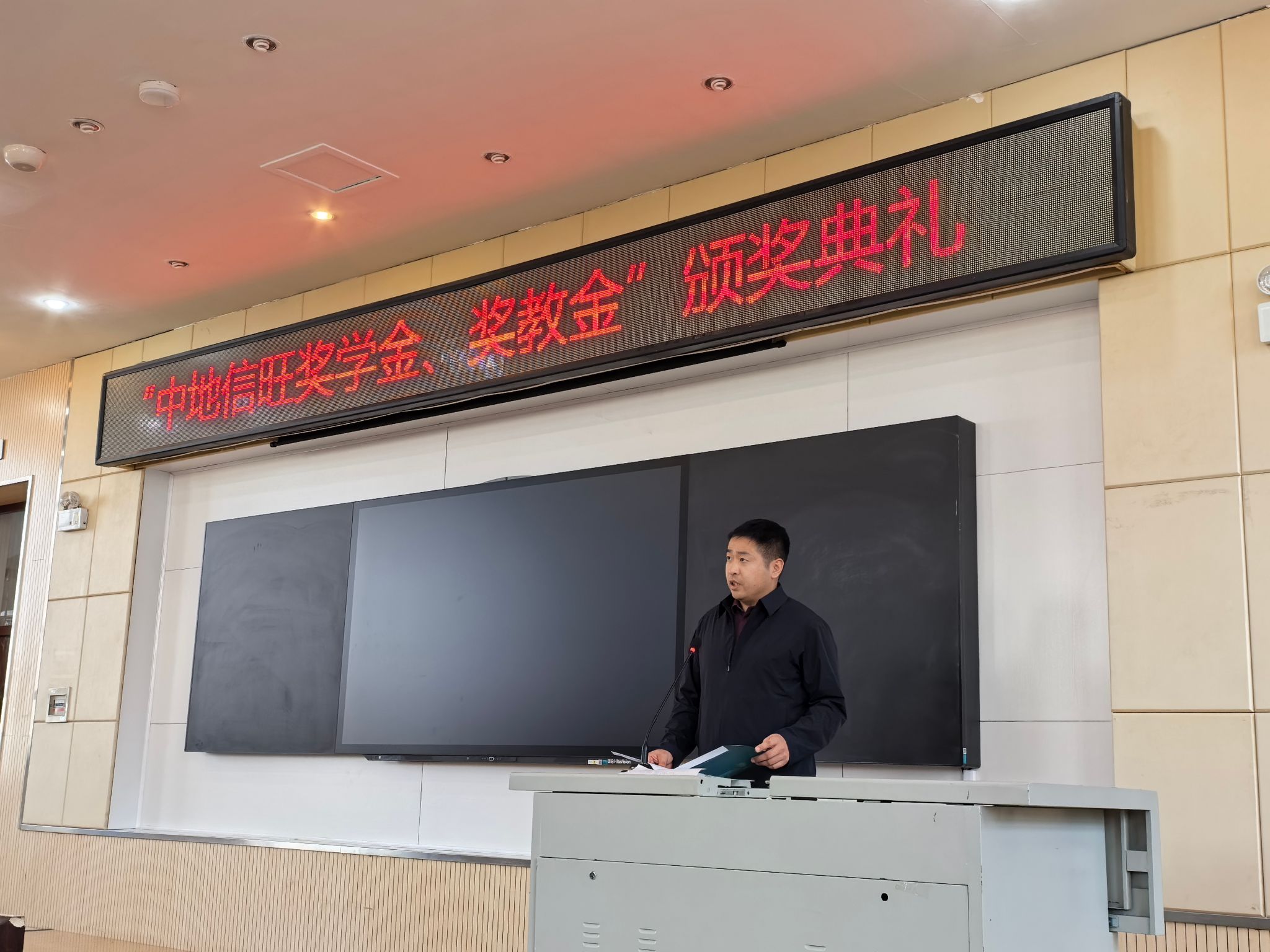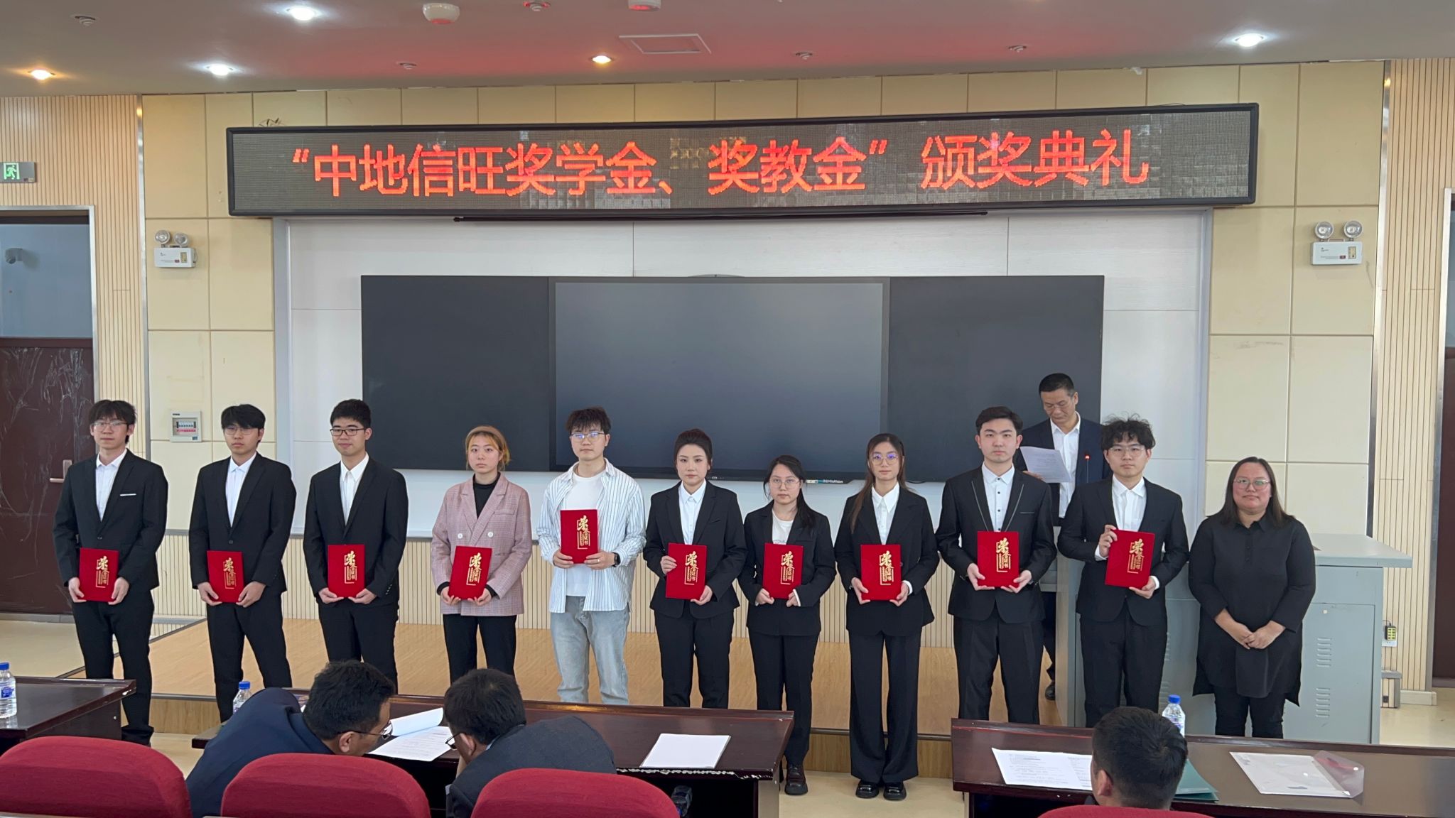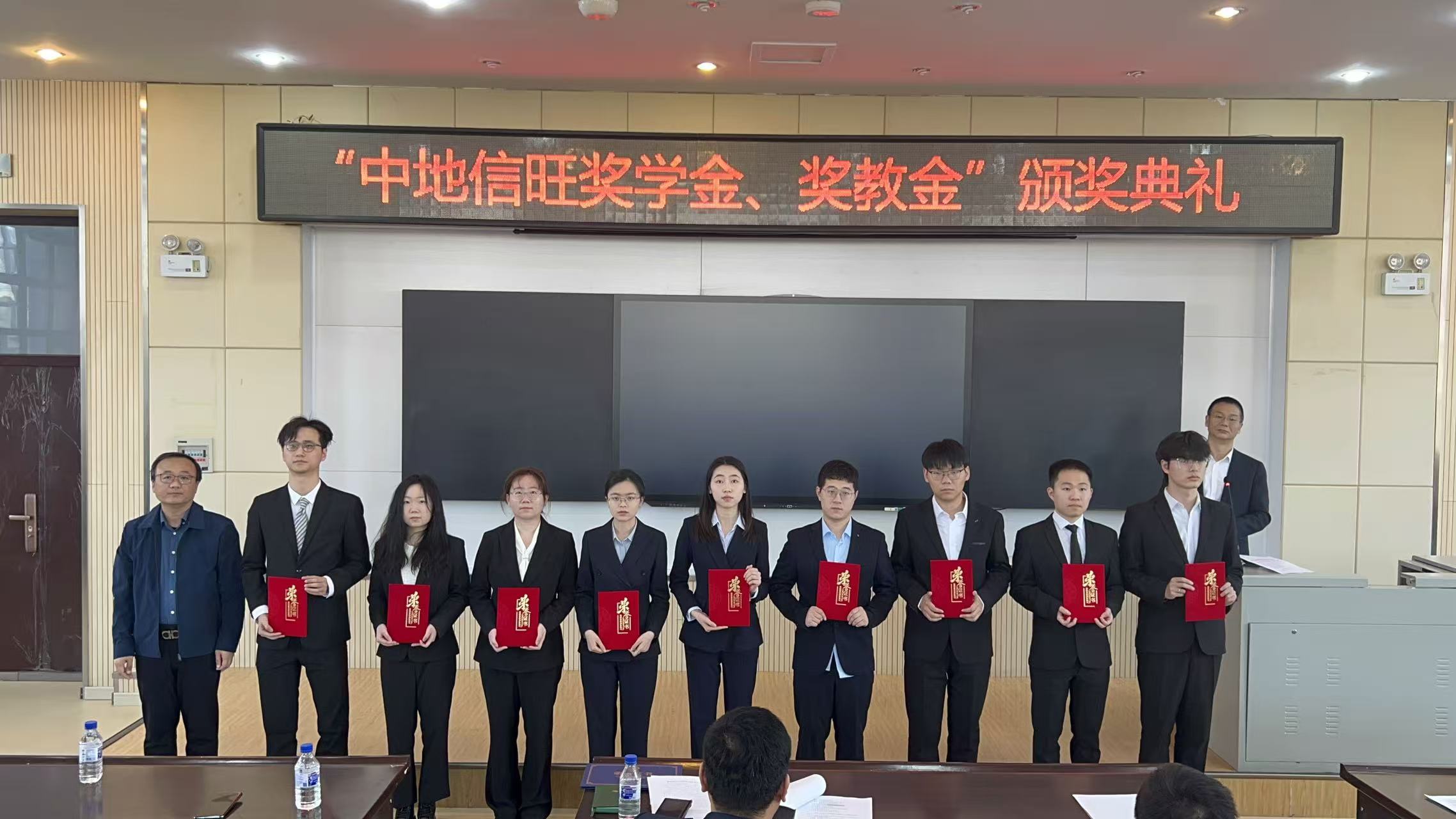 在北区理化楼隆重召开2025年度“中地信旺奖学金”颁奖典礼。会议由徐军副院长主持。全体教职工、获奖学生参加了典礼。